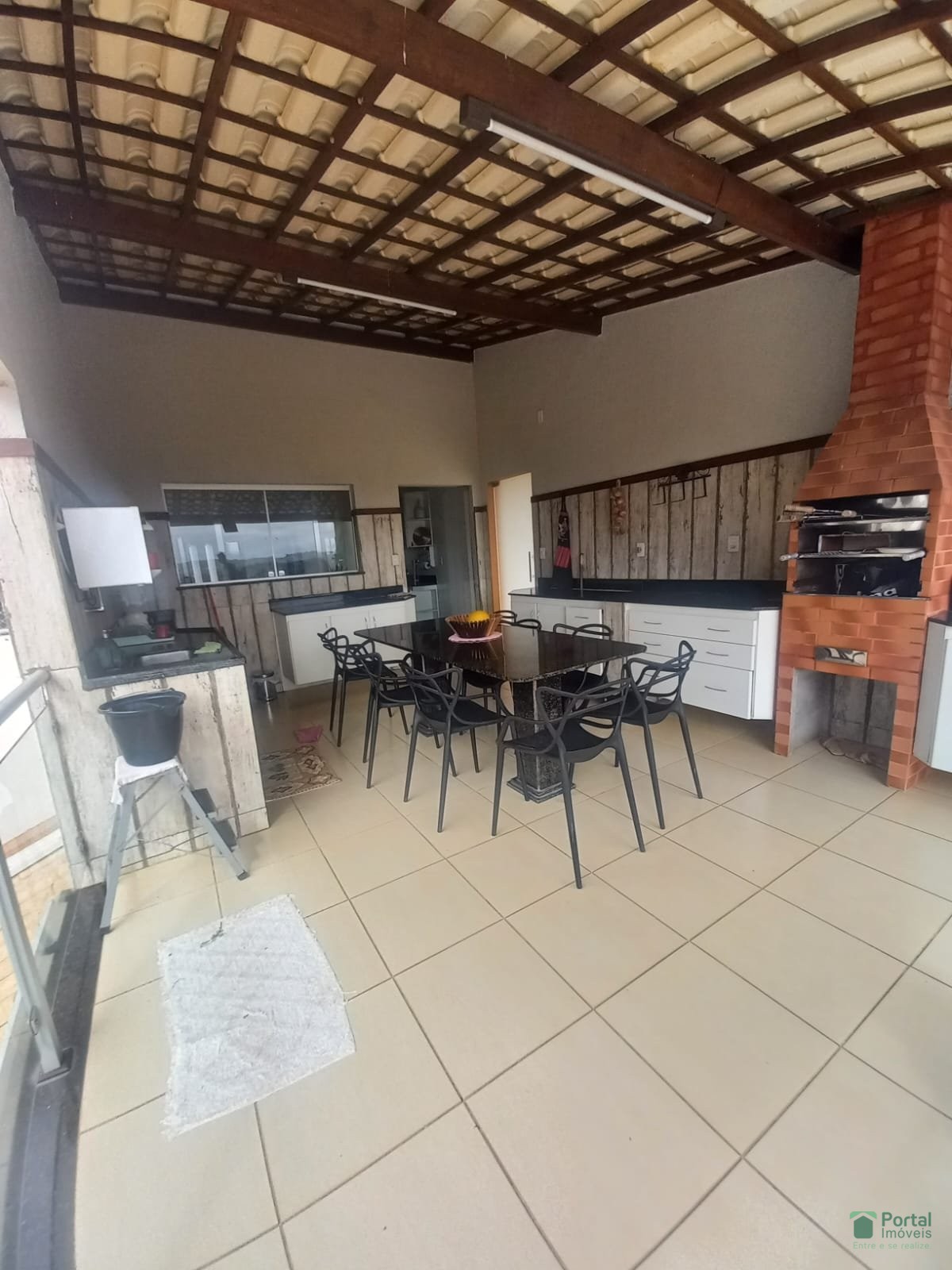 Pav. inferior: Salão de festa c/ armário, piscina e quintal.