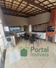 Garagem p/ 02 carros, sala p/ 02 ambientes, sala de jantar, 04 quartos sendo 01 suíte e closet e 03 c/ armário, banho social, cozinha planejada e área de serviço c/ churrasqueira.