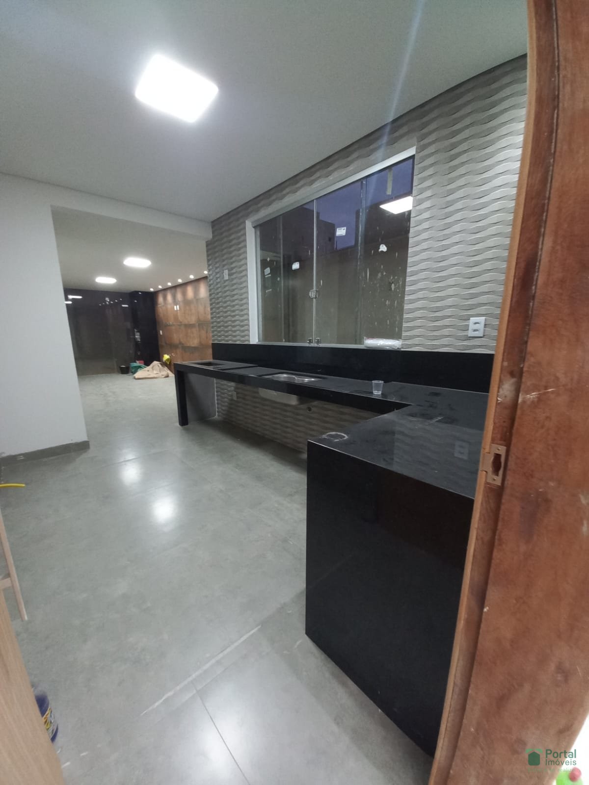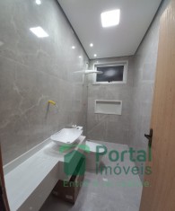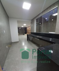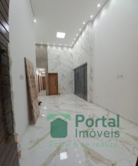 Sala p/ 02 ambientes, 03 quartos sendo 01 suíte e closet, banho social, cozinha c/ bancada, área gourmet, área de serviço c/ wc e garagem p/ 03 carros.