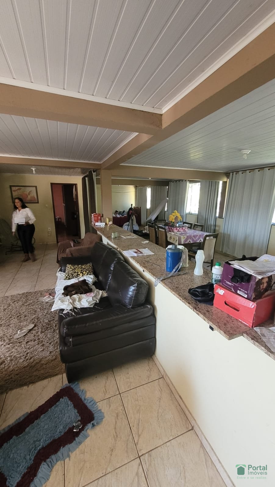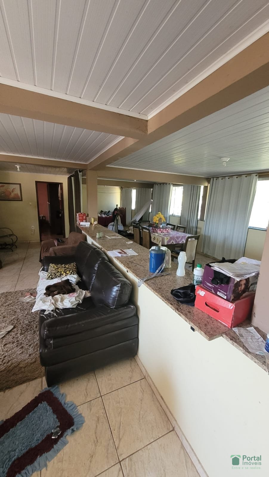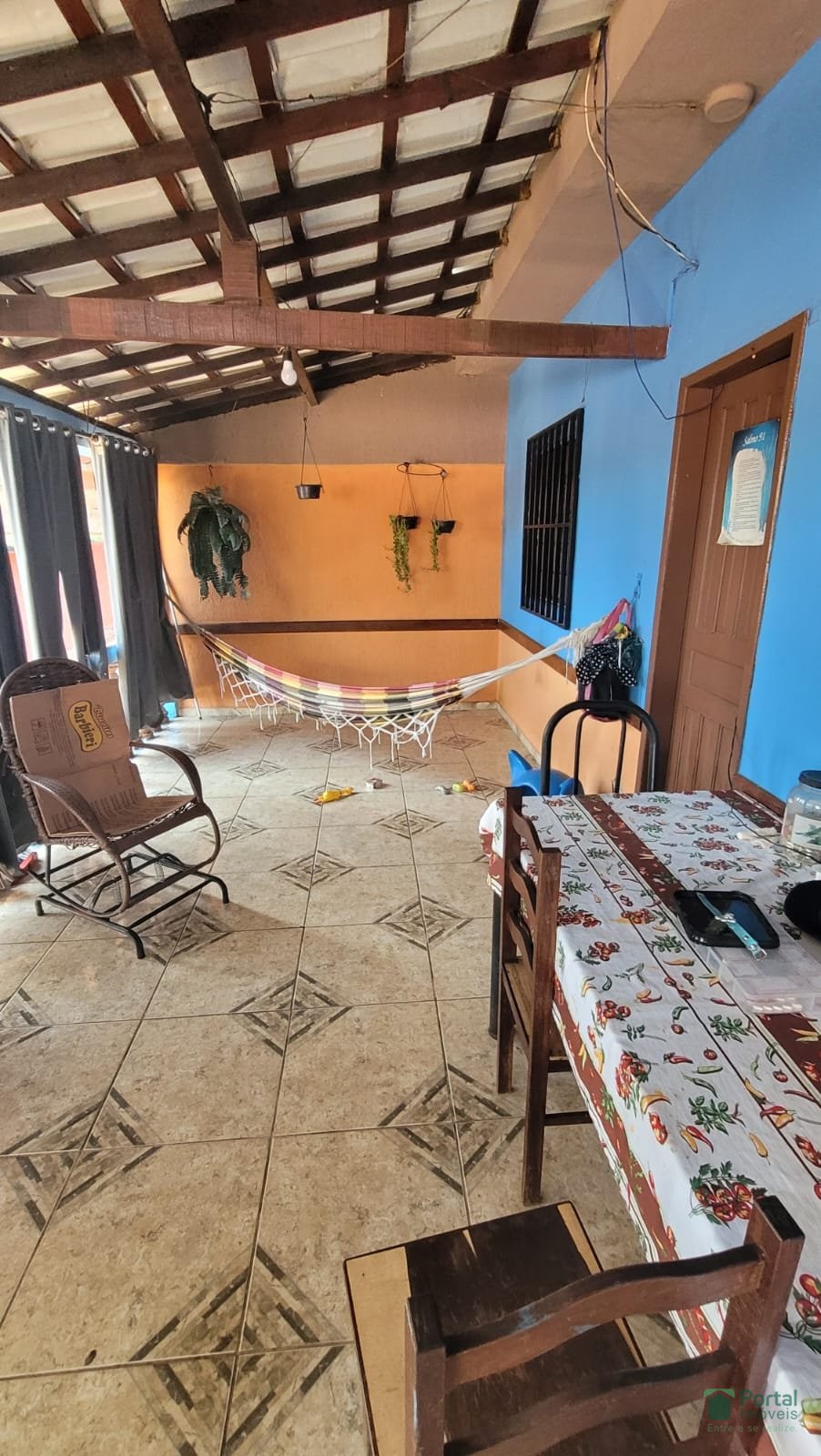 Varanda, sala, copa, 05 quartos sendo 01 suite, cozinha, terraço com área de serviço e sala de TV, 02 banho social, quintal,e garagem para 03 carros.